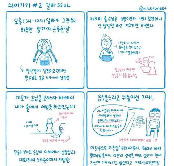 1만 4000여 명의 팔로워를 보유한 ‘니트일기’는 퇴사 후 니트족(일하지 않고 일할 의지도 없는 청년 무직자)으로 살기로 한 주인공의 삶을 그린 인스타툰이다. 작가는 과거 자신의 취준 생활과 직장 생활에서 겪은 어려움으로 인해 니트족으로 전향하게 된 과정을 진솔하게 담아냈다. 취업 준비나 직장 생활로 인한 스트레스 등으로 지친 청춘에 위로를 건네는 ‘니트일기’는 특히 2030층에게 큰 공감을 얻으며 사랑을 받고 있다.
