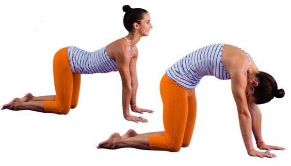 고양이 자세는 고양이의 자세를 본떠 만든 동작으로 요추의 안정화에 효과적이며 수면 전 침대 위에서도 쉽게 따라 할 수 있는 스트레칭 방법이다. 무릎을 꿇고 양팔로 바닥을 짚는다. 이에 숨을 내쉬면서 배와 등을 아치형으로 만들어준다. 숨을 들이 마시면서 배와 등을 다시 내려주는 동작을 반복해 운동 횟수는 3~5회 정도 시행한다. 세트를 반복할 시에는 깊은 호흡과 함께 실행하는 것이 좋다.