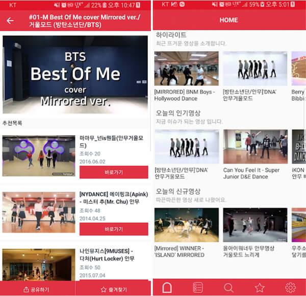 '무료 아이돌 댄스'는 매일 새로운 영상을 업데이트하고, 인기 있는 영상을 추천해준다. 특히 거울 모드와 슬로우 모션 영상을 제공해 초보자들도 쉽게 따라 할 수 있으며, 운동이라는 생각이 들지 않을 정도로 재미있게 칼로리를 소모할 수 있다는 점이 매력적이다.