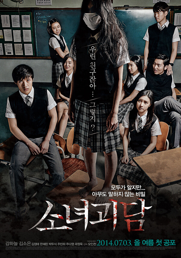 2014년작이자, 배우 강하늘과 김소은이 주연을 맡은 영화 <소녀괴담>은 귀신을 보는 능력을 지녀 늘 외톨이로 지내온 소년 인수(강하늘 분)를 중심으로 전개된다. 극중 인수는 외로움에 지쳐 퇴마사 삼촌 선일(김정태)이 있는 시골집으로 돌아오고, 그 곳에서 기억을 잃은 채로 학교를 맴도는 자기 또래의 소녀귀신(김소은)을 만나게 된다. <소녀괴담>은 어느 학교에나 꼭 하나씩 있는 학교 괴담을 주제로 하여 미스터리한 분위기를 잘 담아냈다.