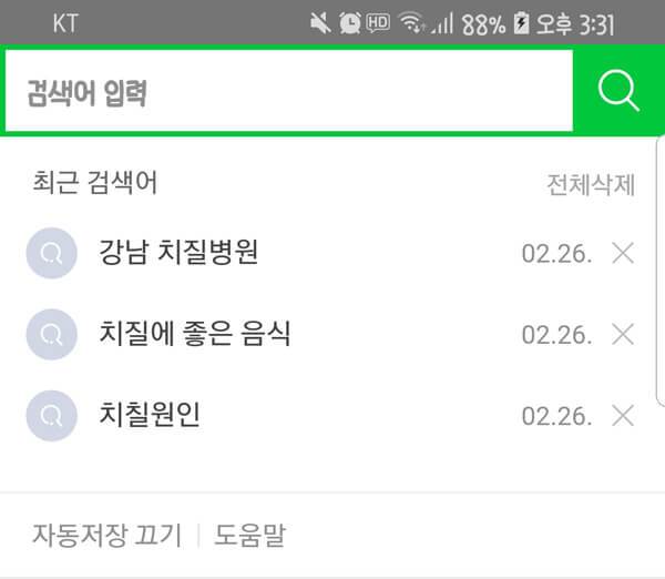 늘 본인이 사용하는 핸드폰이니 자동완성 기능이나 최근 검색어의 노출에 대해서 크게 신경은 쓰지 않는 경우가 많다. 그런데 누군가가 잠시 내 폰을 빌려 뭔가를 검색할 때, 앗 이미 늦어버렸다. 검색창을 누르자마자 최근 검색어 리스트가 적나라하게 펼쳐지기 때문이다. 특히 민망함을 유발하는 검색어를 자주 검색했을 경우 순간 얼굴이 달아오른다. 검색어 리스트에 치질 원인, 치질에 좋은 음식, OO동 치질 병원 등이 올라 있으면 굳이 내 입으로 말하지 않아도 ‘저는 치질입니다’를 연상시키기 때문이다.