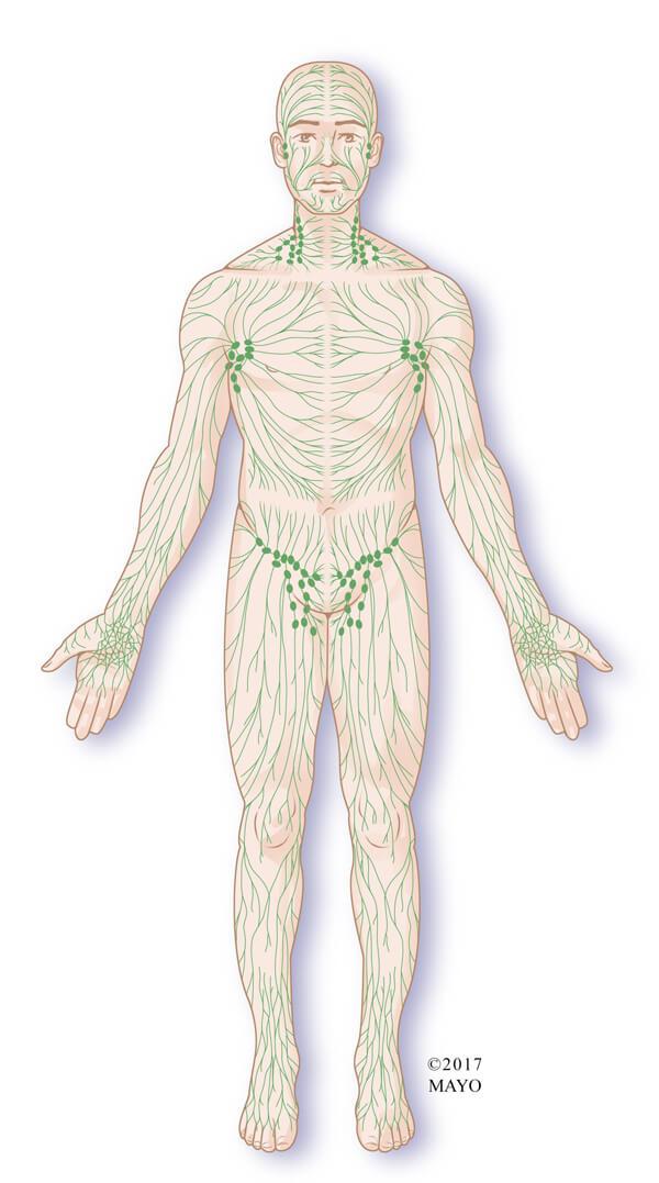 림프절은 종양과 질병의 전이 유무를 확인할 수 있어 자세히는 아니더라도 대략적인 위치를 파악해 두는 것이 중요하다. 림프절은 전신에 분포하나 겨드랑이, 사타구니, 목구멍(인후) 등 신체 부위에 많은 림프절이 모여 있다. 크기는 수 mm에서 1cm 내지 2cm 정도인 조그만 공 모양의 면역기관이다.