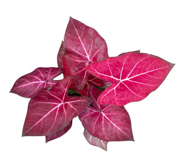 초록 잎에 붉은색의 화려한 색상인 칼라디움의 잎은 사람이 섭취했을 때도 구강, 혀, 입술과 목의 통증으로 타는 듯한 화상의 부기와 호흡곤란, 기도 협착 등으로 사망할 수도 있다. 고양이나 개의 경우에는 구토와 침을 흘리며 비틀거리고 호흡곤란 등이 오는 위험한 식물이다. 색상이 예쁘다고 집안에 들인다면 위험한 상황이 생길수도 있다.