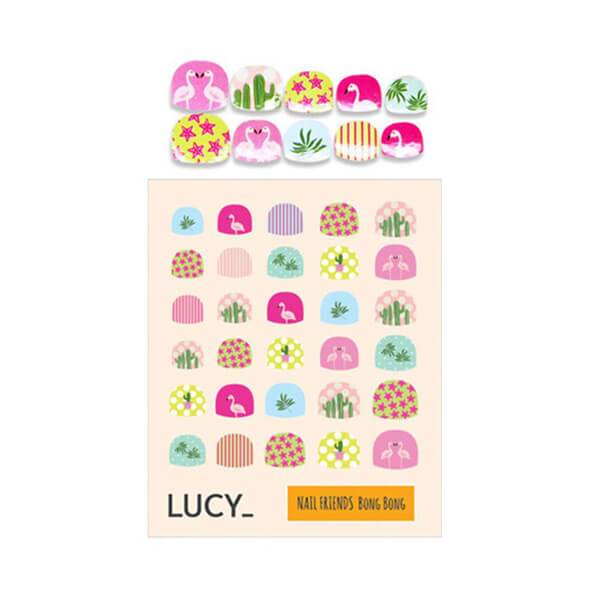 쉽게 붙일 수 있는 네일 스티커 타입으로 일반 스티커와는 다른 특수 원단 인쇄로 지속력이 꽤 우수한 편이다. 그렇다면 접착제가 자극적이지 않을까 염려되지만 독일산 무독성 글루와 특허 받은 용액을 첨가해 독성성분을 중화하여 조금은 안심하고 사용할 수 있다. 특히 물이나 흙놀이 같이 거친 상태의 놀이를 하더라도 꽤 오래 유지되기 때문에 가성비는 괜찮은 편이며 다양한 디자인으로 열 손가락 모두 재미있게 꾸며볼 수 있다.