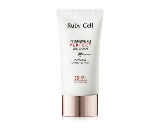 루비셀의 인텐시브 4U퍼펙트 선크림은 강력한 자외선 차단효과는 물론 미백과 주름개선의 3중 기능성을 갖춘 제품이다. 식약처 고시 최대 자외선 차단지수인 SPF50+, PA++++로 업그레이드 해 기존 제품 대비 자외선 차단 기능을 한층 더 강화한 것이 특징이다. 또한 피부 저자극 테스트를 완료해 민감 피부도 매일 바르기에 부담 없으며, 바캉스 활동에도 물과 땀에 강한 포뮬러로 흘러내리지 않는 멀티 기능을 축적했다.