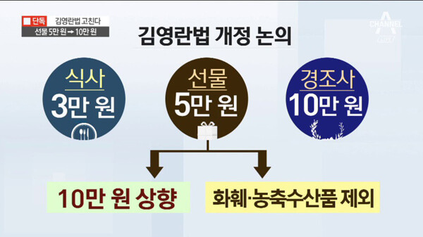 「부정청탁 및 금품등 수수의 금지에 관한 법률」(이하 “청탁금지법”이라 함)에서는 직무관련성이 있을 경우, 어떤 형태의 금품수수도 금지된다. 다만, 원활한 직무수행, 사교·의례, 부조 차원에서의 음식물, 선물, 경조사비 등에 대해서는 우리 사회가 허용할 만한 최소한의 가액 기준을 정하고 있다. 원활한 직무수행 또는 사교·의례 또는 부조의 목적으로 제공되는 3만 원 이하 음식물·5만 원 이하 선물(다만, 농수산물 및 농수산가공품은 10만원)·5만 원 이하 경조사비(다만, 축의금·조의금을 대신하는 화환·조화는 10만원) 등은 수수를 금지하는 금품 등에 해당하지 않는다. 따라서 김영란법의 적용 대상자의 결혼식에서는 이러한 가액 내에서 축의금을 지불해야 한다.