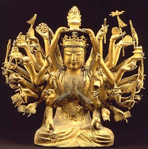 40여 개의 손에 보검, 보탑, 법륜, 경전 등 서로 다른 지물을 들고 두 팔은 화불을 받들고 있는 관음상으로 프랑스 국립 기메 동양박물관에 전시되어 있다. 천 개의 눈과 천 개의 손을 가진 천수천안관세음보살을 표현한 것으로 왼손 20개, 오른손 21개로 만들어져 있다. 국내에서는 보기 드문 특수한 형태의 불상으로 볼수록 오묘하고 엄숙한 분위기를 자아내는 신비함이 대단하다. 상을 올려놓은 목제 받침의 바닥면에 명문이 남아 있어 14세기 또는 15세기 경북 상주시 동방사에서 조성된 것임을 확인할 수 있다.