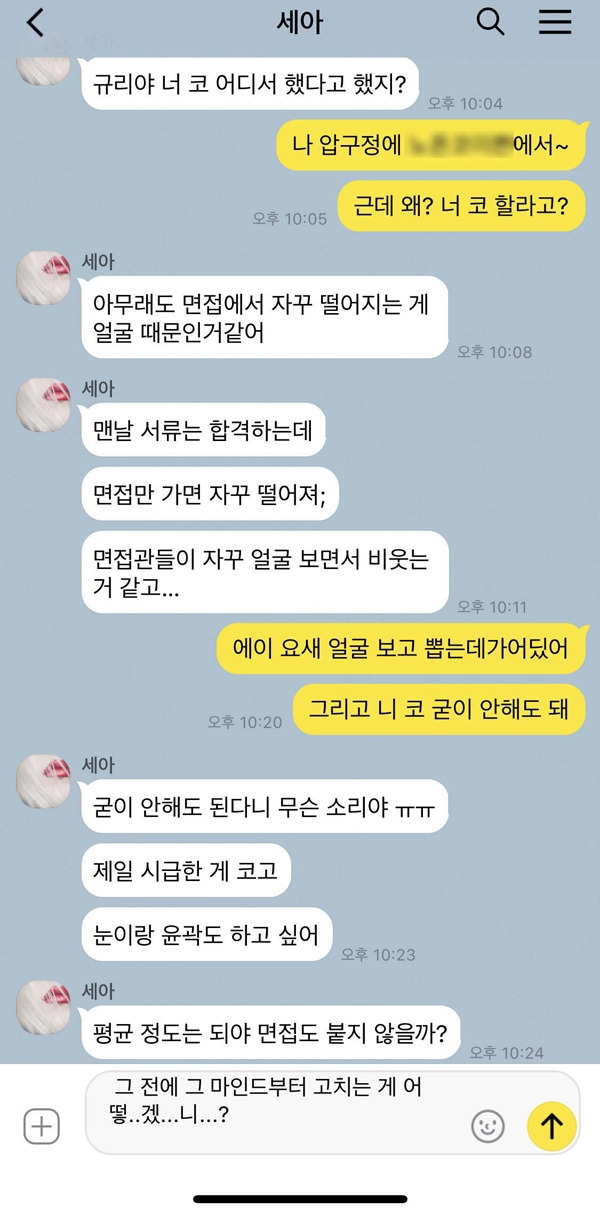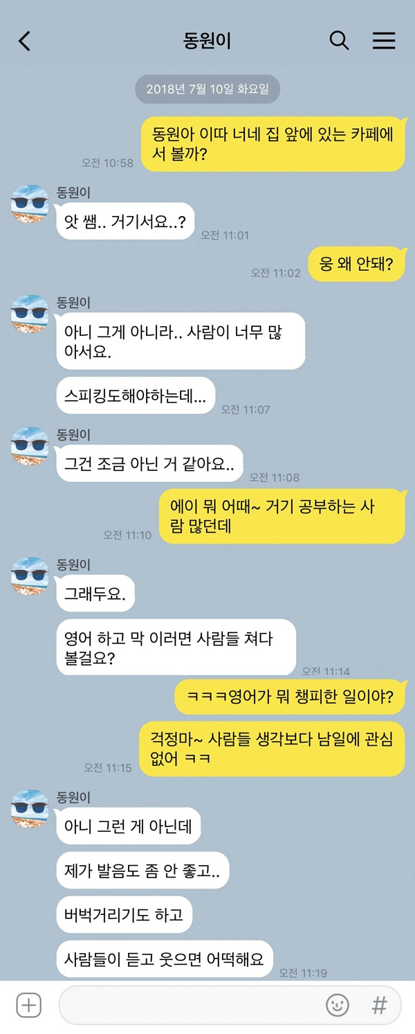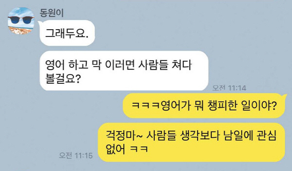 근거 없이 뿜어져 나오는 허무맹랑한 자신감도 문제지만 나 자신을 긍정해야 하는 자존감이 없거나 낮은 것도 문제다. 자존감은 지극히 개인적인 것이긴 하지만 본인의 의지가 있고 조금씩 자신을 믿기 시작하다 보면 충분히 개선될 여지가 있는 부분이기도 하다. 자존감이 낮으면 자신을 믿지 못하기 때문에 작은 선택도 힘들어지고 타인의 시선에 대해 두려워하게 된다. 내면에서 나오는 자신감 하나 없이 자신의 존재에 대해 늘 부정적인 말만 하다 보면 결국 늘 주인이 없는 삶을 살게 될 것이다. 혹시 지금 내 모습이 자존감이 낮은 것은 아닌지 아래 대화를 통해 살펴보자.