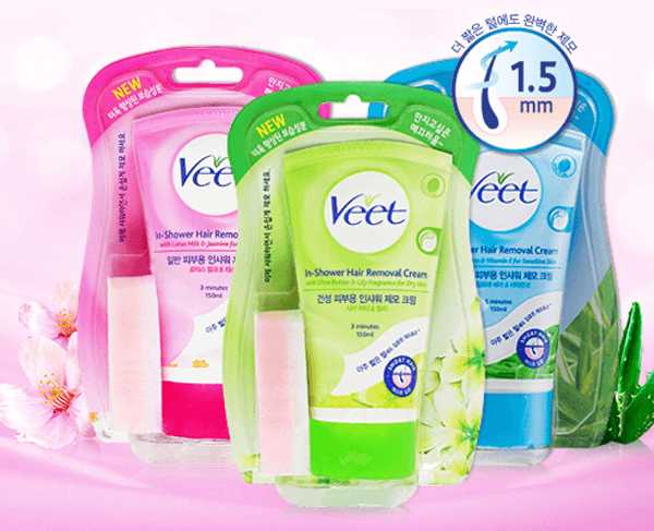 샤워할 때 사용할 수 있는 제모크림이다. 함께 들어있는 스펀지의 핑크색 면을 이용해 크림을 제모 부위에 바른 뒤, 3~6분간 물에 닿지 않게 방치한다. 이후 스펀지의 흰색 면을 이용해 제모크림을 제거하면 제모가 된다. 일반 피부용, 건성 피부용, 민감성 피부용이 있으므로 피부 타입에 맞게 제품을 선택할 수 있다.
