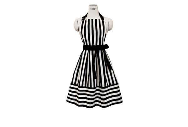 좀 더 특별한 느낌의 앞치마를 찾는다면 직접 이니셜을 새겨 넣을 수 있는 ‘예블리’를 추천한다. 전체적인 분위기는 블랙과 화이트로 모던한 느낌을 주면서 스트라이프나 도트, 플라워, 기하학적 패턴 등을 포인트로 단조로움을 피했다. 일자형 앞치마와 원피스형 앞치마를 세트로 묶어 판매하는 커플 앞치마는 신혼부부에게 더할 나위 없이 좋은 선물이 될 듯하다. 센스 있게 비슷한 디자인의 오븐 장갑을 같이 넣어 선물해보면 어떨까.