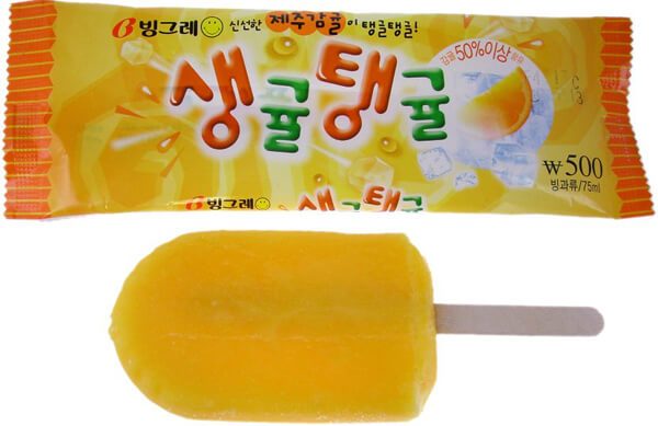 아이스크림 겉 비닐 디자인에서도 과즙 알갱이가 통통 날아 다니는 것 같은 느낌. 생생하고 탱글탱글한 의미를 줄여서 ‘생탱’이라고 표현했는데 이 느낌은 과육의 질감을 표현한 것으로 실제 이 아이스크림에는 제주산 감귤이 50%이상 함유됐다. 그래서 이름만 들어도 탱글탱글한 귤 알갱이가 느껴지는 듯하다. 생탱 감귤의 인기와 더불어 생탱 파인바가 출시 됐고, 이어 생귤탱귤 쥬시 라인으로 아삭아삭한 식감과 상큼한 맛이 일품인 라임 맛, 자몽 맛 등이 출시됐다.