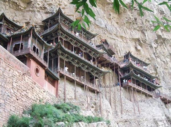 ‘하늘에 걸려 있는 사찰’이라는 뜻의 현공사(쉬안쿵사)는 1,400년 전에 지어진 건축물로, 당시 흉노족의 침입을 막기 위해 만들어졌다. 낭떠러지 암벽을 겨우 파고 들어가 만든 건축물이라 폭이 5m를 넘지 않지만 사찰이 갖추어야 할 것들은 모두 갖추고 있다고 한다. 아슬아슬해 보이는 현공사(쉬안쿵사)는 칸 수가 40개에 달하는 3층 건물이다.