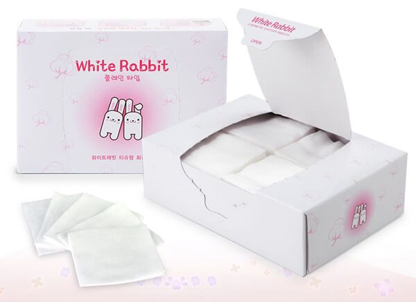 식염수 팩으로 유명한 ‘화이트 래빗’의 화장솜은 비스코스나 화학섬유가 아닌 100% 천연 순면으로 만들어 자극성이 없는 것이 특징이다. 또한 먼지 날림이나 보풀, 밀림, 모양 변화도 없어 화이트 래빗 화장솜을 한 번 사용한 사람들은 다른 제품으로 바꾸지 않고 꾸준히 사용할 정도라고 한다. 스킨케어용인 플레인 전용 타입과 플레인 타입, 클렌징용 홀 타입, 고급 순면 화장솜까지 4가지 타입으로 출시돼 판매되고 있다.