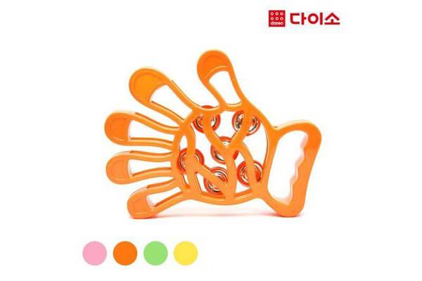 손바닥 모양의 탬버린으로 아이와 동요를 부르며 놀 때 사용하기에 좋은 장난감이다. 손바닥 탬버린을 이용해 손뼉을 치거나 흔들어주면 경쾌한 소리가 나서 아이들이 더욱 즐거워한다. 분홍색, 노란색, 초록색이 있으며 색감이 선명해 아이들의 시선을 사로잡는다.