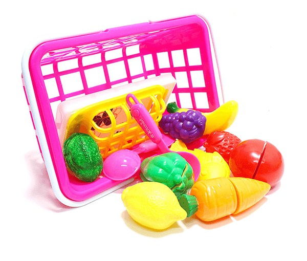 칼과 도마, 접시, 과일 모형 장난감이 들어있는 놀이세트다. 과일 모형 장난감이 반으로 잘라져 있으며 벨크로로 부착돼 있다. 아이들이 칼을 손에 쥐고 과일의 가운데에 맞춰서 과일을 썰면 반으로 잘라진다. 사과, 포도, 오렌지, 수박, 파인애플, 바나나 모형이 있으며 각 모형을 반으로 자르면 알록달록한 과일의 단면을 볼 수 있다. 주방놀이와 함께 과일의 단면, 색깔에 대해 교육할 수 있는 유익한 장난감이다.