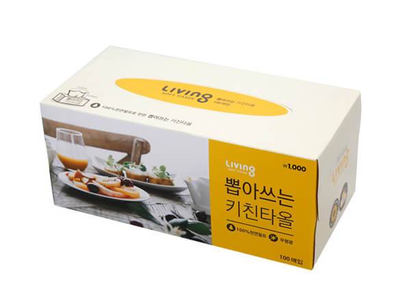 기름이 들어간 요리할 때 많이 쓰는 키친타월은 주방의 필수템이다. 두루마리 형식의 키친타월은 세워두면 옆으로 쓰러지고 눕혀두면 제멋대로 굴러다녀 요리할 때 사용하기에 불편하다. 뽑아 쓰는 키친타월은 이름 그대로 갑 티슈처럼 한 장씩 위로 뽑아서 사용하는 키친타월이다. 한 번 사용하면 편안함에 반해 두루마리 키친타월을 절대 다시 못 쓴다고 할 정도로 재구매율이 높은 제품이다.