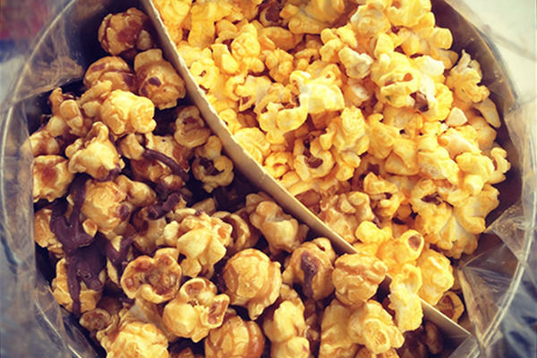 영화관 전체에 풍기는 달콤한 향기. 범인은 언제나 우리의 당분 욕구를 자극하는 캐러멜 팝콘이다. 캐러멜 팝콘은 강렬한 향만큼이나 많은 사람들이 즐겨 먹는 영화관 간식 중 하나이다. 눈앞에서 튀어나오는 갈색 팝콘들을 보고 있자면 군침이 돌기도 한다. 하지만 캐러멜 팝콘은 튀긴 후 30분 정도 지난 것이 더욱 맛있다. 튀긴 직후의 팝콘은 끈적거려 단맛을 온전히 느끼기 어렵기 때문.