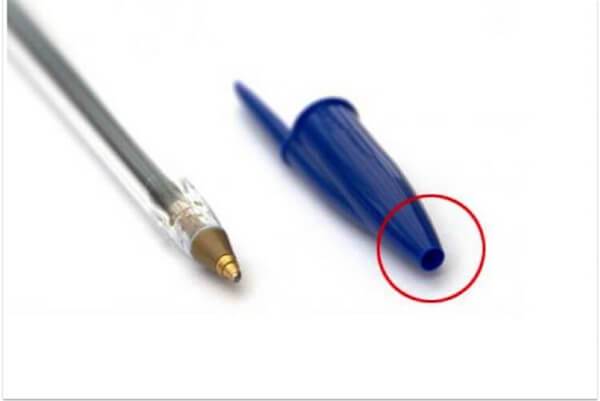 똑딱이식 볼펜이 아니라, 뚜껑이 있는 볼펜의 경우 그 뚜껑을 유심히 보면 머리 부분에 구멍이 나 있는 것을 볼 수 있다. 단지 디자인을 위해서 혹은 재미를 위해서 구멍을 낸 걸까? 사실 이 볼펜 뚜껑의 구멍은 어린아이들이 뚜껑을 모르고 삼켰을 때 질식사를 막기 위해서다. 가늘고 긴 볼펜 뚜껑을 잘못 삼키면 기도가 막힐 수 있는데, 이때 볼펜의 작은 구멍으로 산소가 통과해 질식사고를 막을 수 있는 것이다.