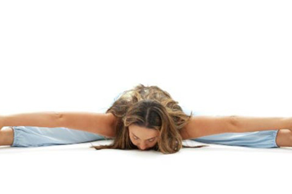 다리를 최대한 가능한 만큼 가로로 벌리고 앉아보자. ‘다리 찢기’라고 표현하는 이 동작은 익숙하지 않은 사람은 근육이 놀라거나 다칠 위험이 있기 때문에 자신에게 무리되지 않는 만큼만 벌리는 게 중요하다. 상체는 바로 세우고 두 손을 무릎에 두고 상체를 숙이면서 팔을 발 쪽으로 뻗는다. 마찬가지로 가능한 정도만 내리도록 하자.