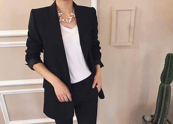 고급스러운 무드의 블레이저. 특히 블랙 컬러의 블레이저는 어떤 옷과도 쉽게 매치할 수 있기 때문에 활용도가 매우 높다. 기본 티셔츠와 슬랙스를 코디하면 내추럴한 분위기, 실크 느낌의 이너와 블랙 팬츠에는 무심한 듯 걸쳐 시크한 느낌을, 화이트 셔츠와 워싱 청바지를 매치하면 깔끔하면서도 캐주얼한 분위기를 줄 수 있다. 어깨 패드는 자연스럽고 단추와 같은 디테일이 화려하지 않은 심플한 디자인을 고르는 것이 다른 옷과 매치하는 것이 쉬우니 참고하자.