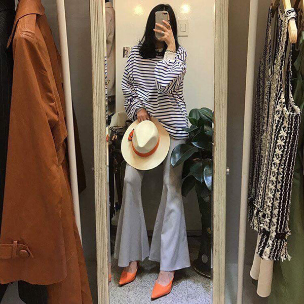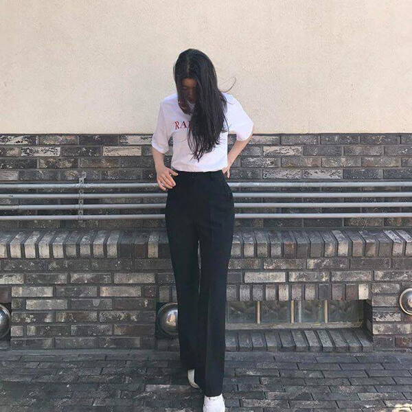 캐주얼한 느낌도 정장 팬츠 느낌의 시크한 매력도 갖고 있는 슬랙스. 상의와 슈즈에 따라 반전 분위기를 낼 수 있는 것이 바로 슬랙스다. 슬림하면서도 탄탄한 라인을 완성해 체형을 커버하는 효과도 있다. 복숭아뼈 위로 올라오는 기장에 스니커즈를 코디하면 발랄한 느낌이, 로퍼를 신으면 세미 수트 느낌을 줄 수 있다. 블랙이나 네이비 컬러처럼 어두운 색상을 구입하면 상의 매치가 한결 편해진다.