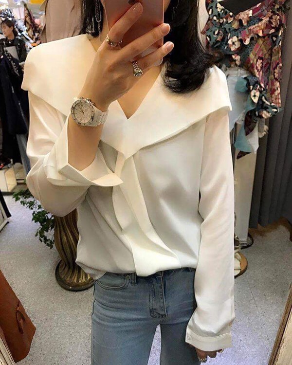 화려한 디테일 없이 적당하게 심플한 화이트 블라우스는 코디하기 좋은 아이템. 그래서 어떻게 코디하느냐에 따라 반복해서 입어도 지루하지 않다. 청바지와 함께 매치하면 깔끔하면서도 발랄한 분위기를, 하이 웨이스트 스커트와 코디하면 여성스러운 이미지를 연출할 수 있다. 라이더 재킷, 뮬과 함께 코디하면 화려한 느낌으로도 변신 가능하다.