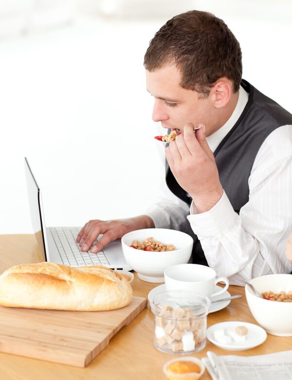 혹시 주문 배달로 회사의 컴퓨터 앞에서 저녁을 먹는 게 일상적이진 않은가? 적어도 식사 시간만큼은 쉬어야 하는 법이다. 업무가 전혀 끼어들지 않는 평화로운 공간과 분위기에서 30분 정도 숨을 돌리며 식사를 하는 것은 삶의 질에 큰 영향을 끼친다. 그러나 이런 환경이 마련되어 있지 않다면, 바쁜 생활에서 잠시 거리를 두어야 하는 건 아닌지 진지하게 자문해 볼 필요가 있다.