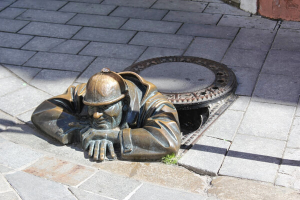 슬로바키아의 '작업 중인 남자(Man at Work)'는 브라티슬라바의 올드타운에서 명물로 불리는 조각상이다. 한 남자가 지하에서 일을 하다 잠시 고개를 내밀고 숨을 돌리는 듯한 모습의 조각은 특유의 재치로 관광객들을 모으고 있는데, 이 동상에 하도 차가 치여서 그 이후로 안내판을 세우게 되었다는 후일담도 있다.