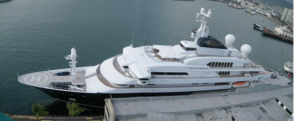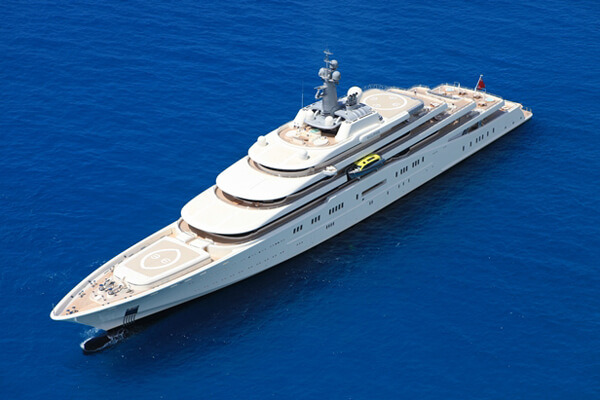 아잠이 등장하기 이전까지 개인 소유의 요트 중 가장 큰 규모를 자랑했던 이클립스. 총 길이 163m로 웬만한 프리깃 함보다 큰 사이즈다. 러시아 제일의 부자이며 우리에게는 첼시 구단주로 잘 알려진 로만 아브라모비치가 소유하고 있다. 첼시 선수들에게 축하용으로 빌려주었다는 소문도 있는 이 요트의 가격은 약 3억7천 달러, 한화로 약 4천3백억 원 정도가 된다. 70명의 선원과 36명의 승객을 태울 수 있는 이 요트는 특히 보안 시스템이 매우 잘 되어 있다. 방탄유리 사용은 물론 미사일 방어 시스템과 비상용 미니 잠수함까지 갖췄다. 그리고 2개의 헬리콥터 이착륙장과 피트니스 클럽, 사우나실, 수영장 등을 갖췄다. 그래서 이 요트를 유지하는 데 연간 7천5백만 달러가 사용될 정도라고 한다.