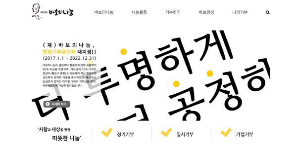 바보의 나눔은 고 김수환 추기경의 생전 나눔 활동 정신을 이어받아 사회의 어렵고 소외된 사람들을 돌보기 위해 2010년 설립된 재단법인이다. 종교를 초월해 국내외 가난한 이웃들을 지원하고, 인권 향상을 위한 공익 활동을 하고 있으며 그를 위한 모금 및 배분을 하고 있다. 전적으로 개인과 기업의 기부금으로 운영되는 바보의 나눔은 홀로 방치된 아이를 위해 문화‧예술활동 지원사업, 심리정서/학습 지원사업, 진로탐색 지원사업을 진행하고 있으며, 누구의 도움도 받을 수 없는 독거노인을 위해 따뜻한 밥상 지원사업, 건강 및 돌봄 지원사업을 수행하고 있다. 또한 편견에 맞서 홀로서기를 준비하는 장애인을 위해 문화 활동 지원사업, 사회참여 지원사업 역량강화 지원사업, 장애인식개선 지원사업 등을 진행하고 있다. 이외에도 다문화, 지역공동체, 생명, 여성, 해외, 환경개선 등을 위해 인종, 국가, 종교, 이념을 초월한 다양한 사업을 추진하고 있다.