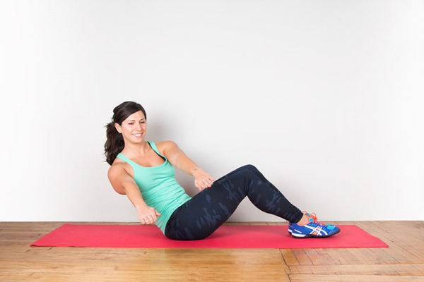 의자가 아닌 바닥에서 할 수 있는 코어 운동도 있다. 우선 바닥에 앉아 허벅지를 붙이고 무릎을 구부린 상태를 만들고, 양 손은 앞으로 나란히 상태로 준비한다. 그 다음 복부 힘으로 살짝 몸을 뒤쪽으로 기대고, 한쪽 다리를 들어 옆에 있는 다리와 높이를 맞춘 뒤 내쉬는 숨에 몸을 들려 있는 다리 쪽으로 트위스트 한다. 이 때 팔의 간격은 계속 어깨 너비가 유지될 수 있도록 하고, 목만 돌아가지 않도록 주의해야 한다. 또한 들려있는 다리가 몸을 돌릴 때 틀어지지 않게 계속 정면을 향하게 해야 한다.