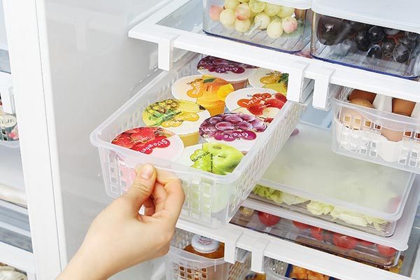 수납용기의 종류도 천차만별이다. 냉장고 도어에 세워넣어 사용할 수 있는 원통형 용기부터 생선, 고기 등을 소분해 보관할 수 있는 납작한 냉동밀폐용기, 채소에 물이 생겨 흐물흐물해지는 것을 막아주는 채반형 용기 등 다양한 종류의 수납용기와 수납용 바구니를 적절하게 이용하면 보기에도 깔끔하고 식재료 또한 좋은 상태로 보관, 유지할 수 있다.