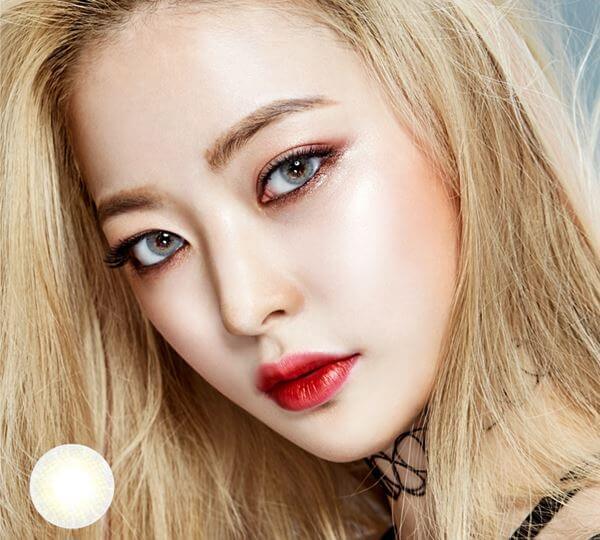 일명 혼혈렌즈라고 불리며 가장 핫한 렌즈. 밝은 그레이 색감이 그라데이션 되어 있어 눈빛이 좀 더 또렷해 보인다. 직경도 작고 서클라인이 없기 때문에 더욱 자연스러운 컬러가 연출된다. 연한 그레이 컬러다 보니 밝은 헤어 컬러와 내츄럴한 메이크업을 연출하면 전체적으로 조화가 잘 되고 어두운 모발이나 스모키 메이크업에 연출하면 눈이 강조되는 효과를 볼 수 있다.
