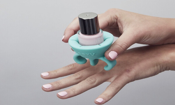 갖가지 셀프 네일 도구로 인해서 예전보다 셀프 네일이 훨씬 쉬워진 요즘. 때문에 네일 샵을 가지 않아도 특별한 아트 디자인을 즐기는 이들이 많아졌다. 그중에서도 눈에 띄는 제품이 있었으니 바로 네일 폴리시(매니큐어) 홀더. 셀프 네일을 하다 보면 가장 불편한 점이 네일 폴리시 케이스 자체를 잡고 바르기가 어렵다는 것. 보통 바닥에 놓고 하거나 한 손으로 쥔 채로 바르게 되는데 문제는 주 사용 손이 아닌 반대 손을 이용할 경우다. 아직 채 마르지 않은 네일 때문에 망치기도 일쑤. 이때 도움이 되는 것이 바로 이 제품이다. 손가락이나 발가락에 낀 후 네일 폴리시를 위에 올려놓으면 셀프 네일이 한결 쉬워진다. 아쉽게 아직 우리나라에서는 판매 중이 아닌 것으로 알려져 있다.