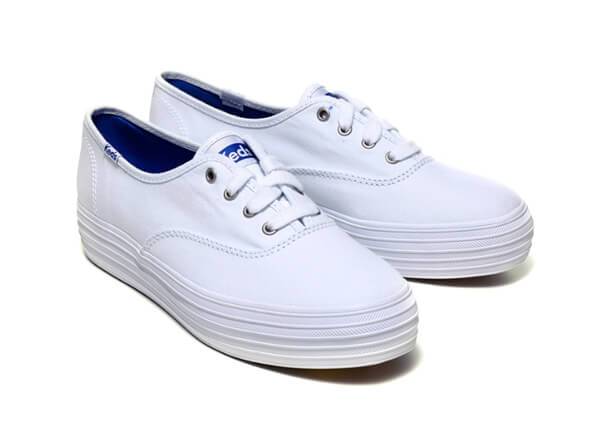 기본 스니커즈 디자인에 시원해 보이는 ‘케즈’만의 블루 포인트로 더욱더 세련되어 보이는 스타일. 너무 낮거나 높지도 않은 적당한 3cm 정도의 굽 덕분에 편안한 착화감을 자랑한다. 그리고 이 굽 덕분에 좀 더 여성스러운 느낌으로 어떤 코디와도 잘 어울리는 것이 특징. 편안한 블랙 슬랙스에 포인트로 매치해도 좋고 무릎 아래까지 길게 내려오는 롱 스커트와도 편안하게 잘 어울린다. 이때 발목 위까지 올라오는 앵클삭스를 신는 것도 좋은 포인트가 될 수 있다.