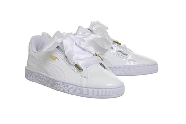 여성용 스니커즈로 출시된 ‘바스켓 하트’는 푸마의 스웨이드 클래식과 70년대 그런지 시대의 패션에서 영감을 받아 제작됐다고 한다. 그래서 스웨이드 플랫폼이 주는 클래식한 디자인에 높은 아웃 솔을 매칭해 좀 더 트렌디한 느낌을 준다. 여기에 사랑스럽고 발랄한 분위기를 연출할 수 있는 볼드한 리본 끈이 더해져 여성들에게 큰 인기를 끌고 있다. 묶었을 때 마치 하트와 같이 모양이 잡히기 때문에 더 특별한 것. 스포티한 느낌의 베이식 끈도 함께 제공하니 그날그날 분위기에 맞게 색다르게 연출하면 좋다.