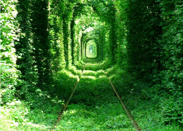 우크라이나 리우네주 클레반 마을 주위에 위치한 철로이자 천연기념물로 누구나 한 번쯤 사진은 보았더라도 정작 어디에 위치해 있는지 모르는 경우가 많은 곳이기도 하다. 수많은 나무와 덤불이 서로 엮이면서 아치모양을 형성하고 그 사이를 통과하는 기차는 마치 그림 같은 풍경을 연출한다. 광고나 뮤비에서도 자주 등장한 사랑의 터널은 이름 그대로 남녀가 함께 이곳을 통과하면 사랑이 이루어진다는 전설을 가지고 있다. 때문에 웨딩촬영이나 커플들의 스냅촬영 장소로도 꾸준한 사랑을 받는 중.