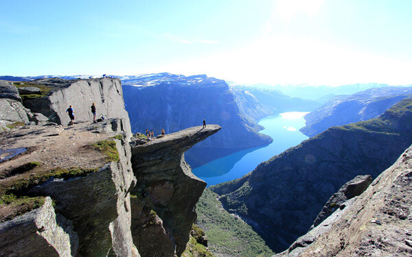 손발이 후들거릴 정도로 아찔하지만, 그 만큼 더 매혹적인 풍경을 자랑하는 곳 노르웨이 트롤퉁가 전망대이다. 트롤퉁가라는 이름은 북유럽 전설 속에 등장하는 덩치 큰 괴물 ‘트롤’의 혀를 뜻하는 것으로 이름 그대로 혀처럼 툭 튀어나온 바위가 눈길을 끈다. 해발 1100m 높이에 위치한 기암절벽으로 도보로 8시간이 걸리고 전화가 터지지 않지만 전 세계 관광객들의 발길이 끊이지 않는 인기 만점 명소이다.