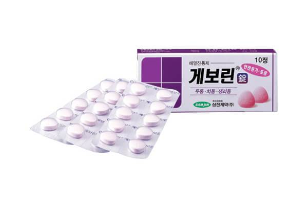 생리통 진통제로 가장 널리 알려져 있는 게보린은 ‘아세트아미노펜’ 이라는 성분을 포함하고 있다. 이는 가장 안전한 성분으로 진통제에 널리 쓰이지만 간 세포를 파괴하는 부작용도 함께 가지고 있어 간이 안 좋은 이들은 피하는 것이 좋다. 또한 카페인이 함유되어 있기 때문에 신경 안정과 두통에 효과를 보이는 진통제이기도 하다. 이와 비슷한 성분을 함유한 것이 펜잘, 사리돈-에이와 같은 제품들로 생리통과 함께 미열,두통이 느껴진다면 이 세 제품들을 찾아보도록 하자.