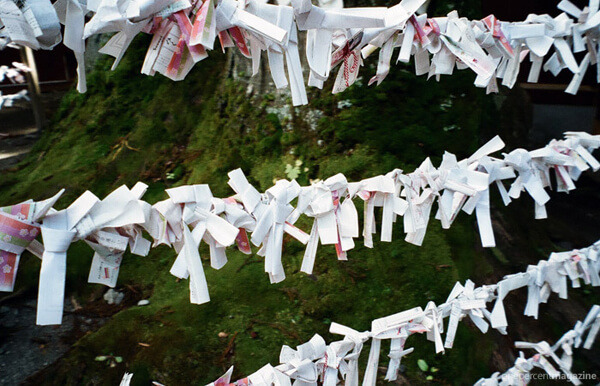 일본의 절이나 신사에 방문하면 많이 볼 수 있는 오미쿠지. 길흉을 점치기 위한 방법으로 고대 시대 때 나라의 후견인을 결정할 때 신의 의견을 듣기 위해 제비 뽑기 하던 방법에서 유래되었다고 한다. 이후 카마쿠라 시대 초기부터 설날 신사에서 참배를 하며 새해의 길흉을 점치기 위해 제비를 뽑는다. 통 안에 숫자가 적힌 막대기를 뽑고 그 숫자에 해당하는 서랍을 열어 운세를 확인한다. 만약 좋은 운세가 나오면 그대로 가져가고 좋지 않은 운세가 나왔다면 나뭇가지에 묶어 놓아 나쁜 운이 나오지 못 하게 한다.