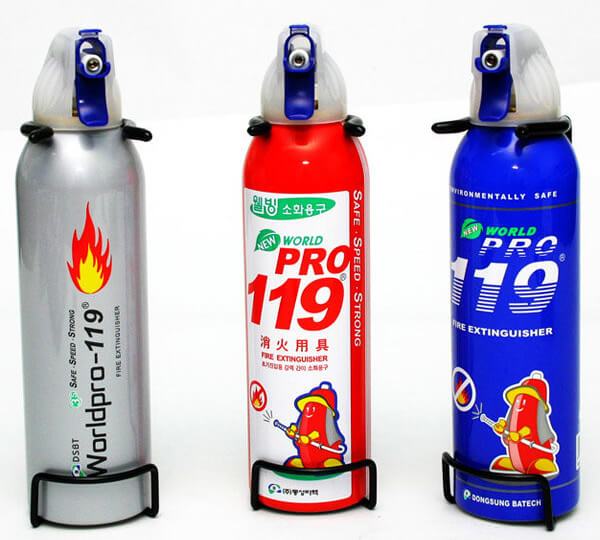 혼자 있을 때 불이 난다면? 혼자뿐이라 이성을 찾지 못한다면 불길은 금방 커질 것이다. 이럴 때를 대비해 119 미니 소화기를 구비해놓자. 이 제품은 대부분 스프레이형으로 출시되며, 식용유 화재와 같은 화재에 탁월한 효과를 발휘한다.