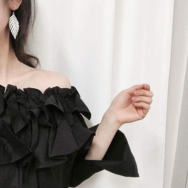 목에서 어깨까지 내려오는 승모근 라인과 쇄골이 예쁘다면 오프 숄더를 즐겨 입으면 좋다. 물론 쇄골이 잘 보이지 않아도 컨투어링 메이크업을 통해 어느 정도 커버는 할 수 있다. 오프 숄더 스타일은 옷의 디테일에 따라 화려한 느낌부터 섹시한 분위기, 귀여운 분위기 등 다양하게 표현할 수 있다. 만약 좀 더 섹시한 분위기를 연출하고 싶다면 블랙 컬러에 하이웨이스트 스커트나 슬림한 H라인 스커트를 함께 코디 해보자.