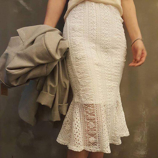없는 볼륨감도 만들어주는 마법의 스커트. 허리와 힙 라인을 잡아주면서 완벽한 보디라인을 표현할 수 있는 머메이드 스커트는 여성스러운 몸매를 드러내기 때문에 로맨틱한 무드로도 섹시한 느낌의 무드로도 자주 활용되는 아이템이다. 레이스나 시스루 소재가 더해진 스타일의 경우에는 고혹적인 분위기가 한층 살아난다. 이때 너무 길거나 짧은 기장보다는 무릎 아래로 내려오는 적당한 길이감이 좋다. 상의는 최대한 심플하게 코디하는 것도 잊지 말 것.