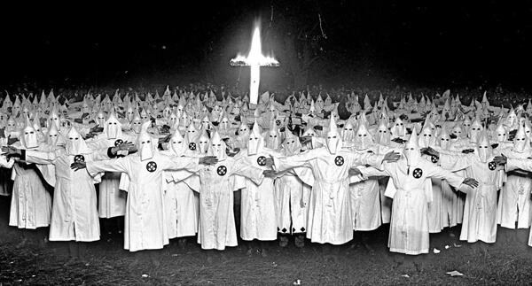 KKK단(쿠클럭스클랜)은 남북전쟁 후에 생겨난 인종차별주의적 극우비밀조직으로, 하얀 가운에 복면을 쓰고, 십자가에 불태우는 흑인협박 의식을 통한 테러를 기도하였으며, 민주당이 이 조직을 이용해 남부 전체로 일시에 세력을 확산하였고, 여러 지역의 선거에서도 승리하였다. 그러나 KKK단의 이와 같은 폭력 행위가 걷잡을 수 없게 되자 70년 무렵 폭력을 단속하기 위한 연방법이 제정되어 KKK단은 형식적으로 해체되었다. 하지만 이후 활동을 재개하며 2, 3차 클랜으로 각종 범죄를 일으켰으며, 현재까지도 활발히 활동하고 있다.