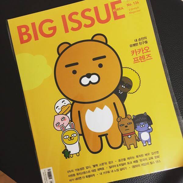 잡지 ‘빅이슈’는 134호의 표지 모델을 라이언으로 장식했는데 순식간에 다 팔려버려 부랴부랴 재판을 찍었고 평소의 두 배인 2만5000부가 팔려나갔다. ‘빅이슈’는 노숙인의 자립을 돕기 위해 창간된 잡지로 노숙인 등 주거 취약계층에게만 잡지 판매권을 부여해 자활의 계기를 제공한다. 노숙인에게 우선 ‘빅이슈’ 10권을 무료 제공하고, 노숙인들은 이 10권을 팔아 자본금을 마련해 다시 책을 사고 판매해 수익을 얻는 구조다. 그 동안 많은 스타들이 빅이슈 표지 모델로 나서 재능 기부를 펼쳐왔는데, 라이언도 이 대열에 당당히 합류한 것이다.
