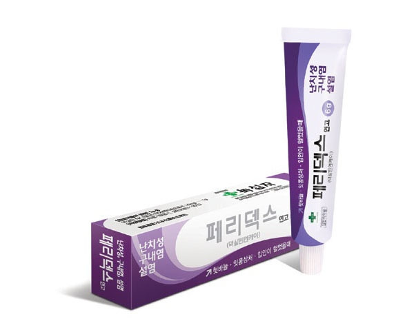 일본 화약의 특허기제와 국소 스테로이드제 덱사메타손을 배합한 구내염 치료제 페리덱스는 음식물 섭취 등 물리, 화학적 자극으로부터 환부를 보호해주는 효과가 있다. 페리덱스는 전연성(얇게 퍼지는 성질)이 우수해 환부에 매끄럽게 도포되고, 이물감을 주지 않는 장점이 있으며, 구강 습윤 점막에 대한 점착성이 뛰어나 타액 및 음식물 섭취 등에 따른 환부 보호 작용도 뛰어나다.