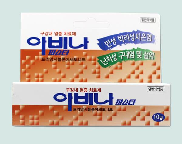 태극제약의 아비나 파스타도 효과 좋은 구내염 약으로 인정받아 찾는 사람들이 많아졌다. 트리암시놀론 성분의 아비나 파스타는 난치성 구내염과 설염, 만성 박리성치은염 등에 적응증을 가지는데, 효과가 좋아 마니아층이 있을 정도라고 한다.