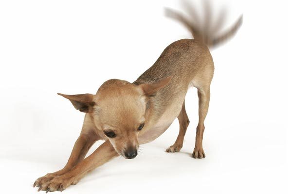 애정과 친밀감을 나타내기 위해 하는 표현이다. 왼쪽에 가깝게 흔들면 불안 등 부정적인 감정을 포함하고 있는 것이고, 오른쪽에 가깝게 흔들면 긍정적인 감정을 더 포함하고 있는 것이라고 한다. 반려견의 꼬리 흔들기를 관찰해보는 것도 좋을 것이다.