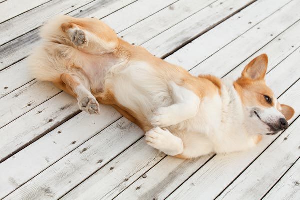 배를 보인다는 것은 싸울 의사가 없으니, 너에게 항복한다는 의미이다. 적대 관계가 아닌, 반려 관계일 경우 상대에게 마음을 열었다는 의미이기도 하다. 누워서 꼬리를 흔들면서 주인을 바라보는 건, 놀아달라는 나름의 애교다. 목이나 배를 슬슬 긁어주면 좋아할 것이다. 함께 놀아준다면 더할 나위 없이 좋다.