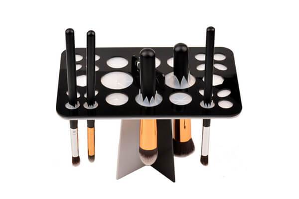 깨끗이 세척한 브러시를 간편하게 말릴 수 있는 제품. 거꾸로 세워 보관해야 하는 브러시 특성을 살려 만들었다. 브러시 사이즈대로 구멍이 뚫려 있고 십자형으로 뚫린 고무 재질이 붙어 있어 브러시 핸들을 꽉 잡아주는 역할을 한다.